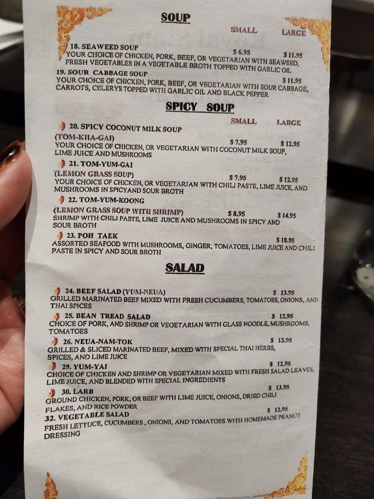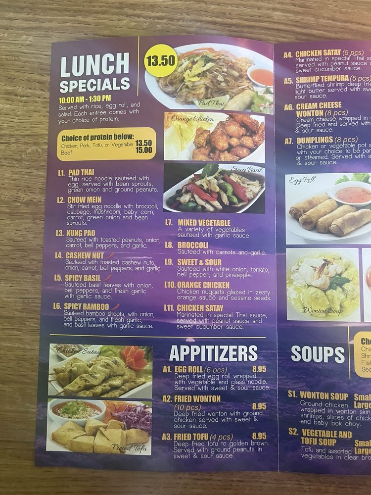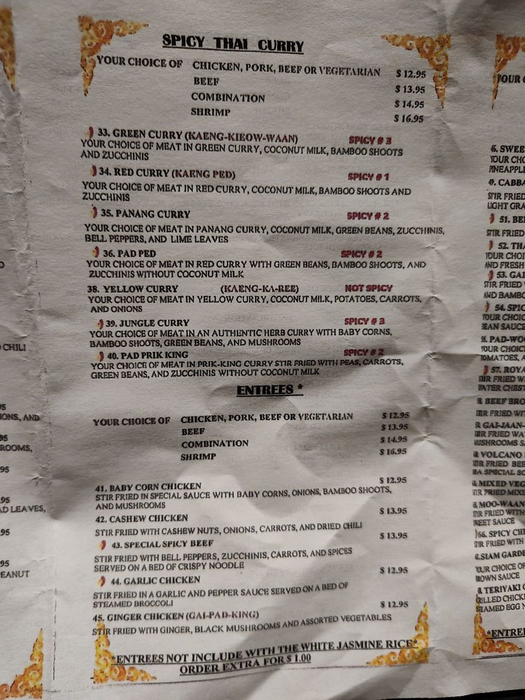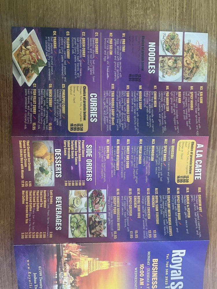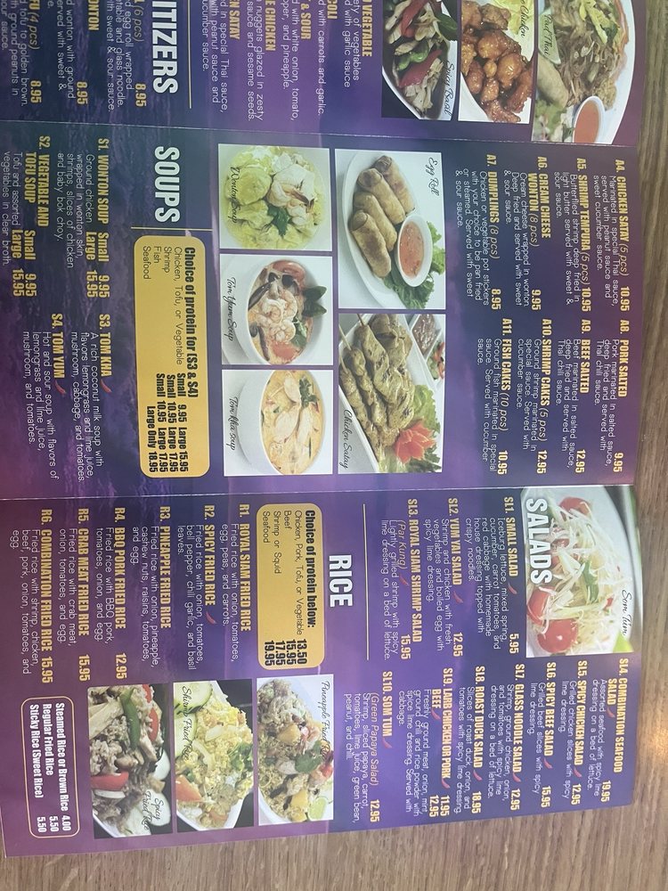 Royal Siam Cuisine Thai Restaurant Menu